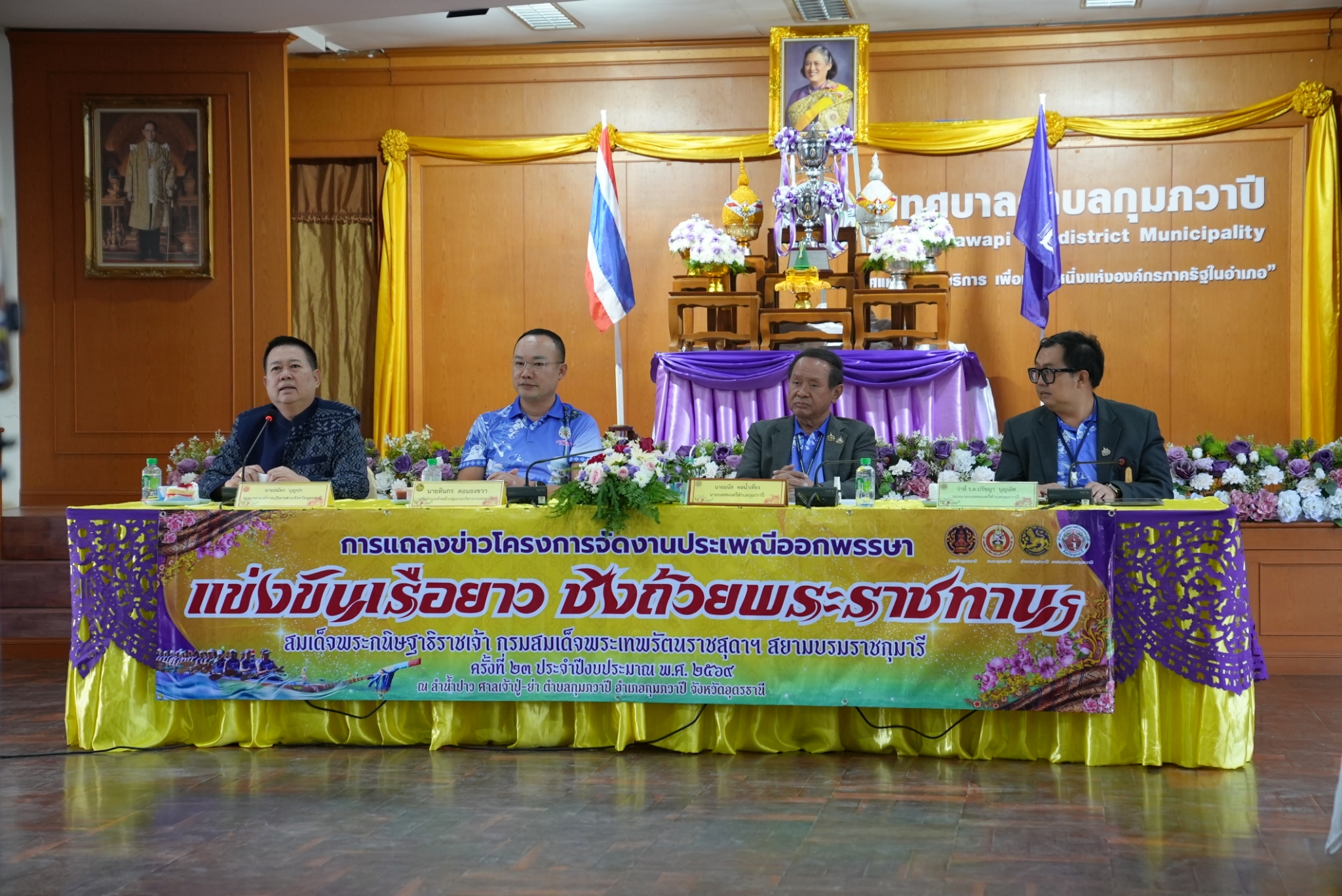 เมื่อวันที่ 22 ตุลาคม 2568 เวลา 10:30 น. ณ ห้องประชุมจันทร์กระจ่างฟ้า เทศบาลตำบลกุมภวาปี ได้จัดงานแถลงข่าวการจัดงานประเพณีที่ยิ่งใหญ่ที่สุดแห่งปี “ประเพณีแข่งเรือยาวชิงถ้วยพระราชทานสมเด็จพระกนิษฐาธิราชเจ้า กรมสมเด็จพระเทพรัตนราชสุดาฯ สยามบรมราชกุมารี ครั้งที่ 23 ประจำปี 2568” โดยมีกำหนดจัดขึ้นระหว่างวันที่ 30 ตุลาคม ถึง 1 พฤศจิกายน นี้ ณ ลำน้ำปาว ตำบลกุมภวาปี อำเภอกุมภวาปี จังหวัดอุดรธานี